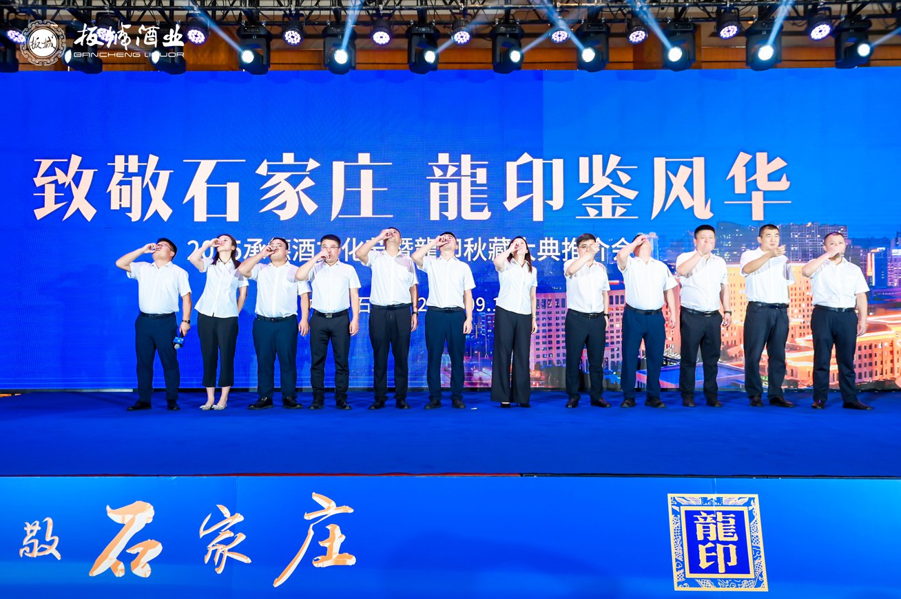 歐式長桌宴+中式待客禮,板城酒業(yè)石家莊戰(zhàn)區(qū)龍印部銷售總監(jiān)孫坤申與石家莊龍印部業(yè)務(wù)經(jīng)理共同登臺(tái)祝酒。