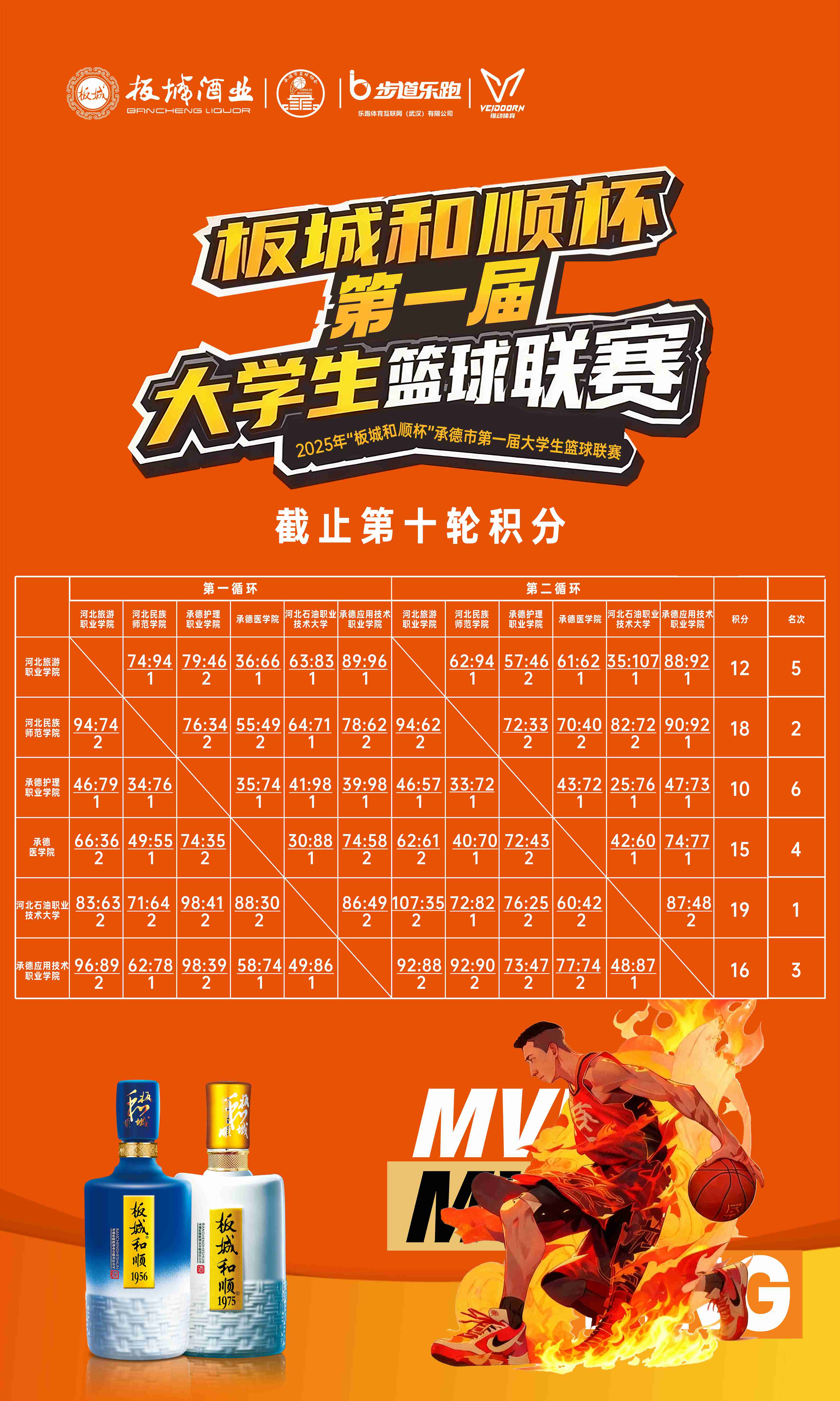 賽事精彩對(duì)決,燃動(dòng)大學(xué)校園,30場(chǎng)比賽對(duì)決,每場(chǎng)比賽由獲勝隊(duì)伍選出mvp球員,板城酒業(yè)為每位MVP選手送上鑒證重大時(shí)刻的龍印美酒。