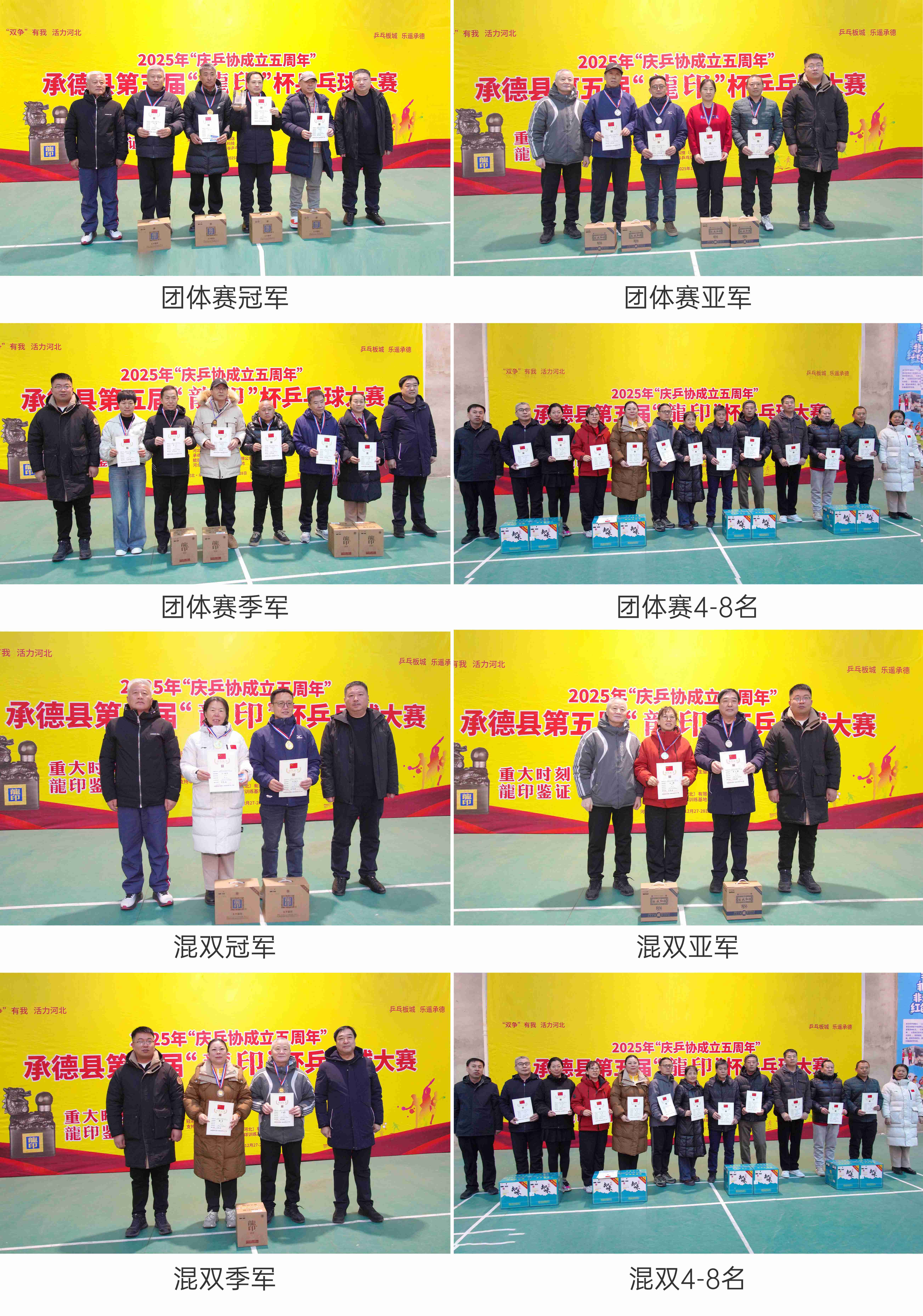 12月27日至28日,2025年“慶乒協(xié)成立五周年”承德縣第五屆“龍印杯”乒乓球大賽圓滿落幕。本次賽事由承德縣教育和體育局、承德縣旅游和文化廣電局聯(lián)合主辦;承德縣體育總會(huì)、承德縣乒乓球運(yùn)動(dòng)協(xié)會(huì)承辦;承德縣民政局、承德縣衛(wèi)生健康局、承德縣融媒體中心協(xié)辦;板城酒業(yè)連續(xù)五屆獨(dú)家冠名支持。